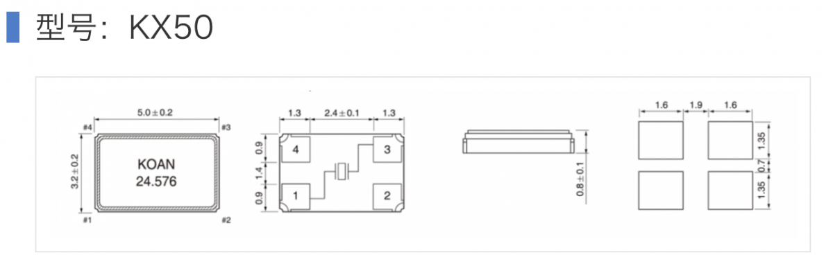 四腳: 四腳無(wú)源晶振: 外殼上如果沒(méi)有點(diǎn)(?)標(biāo)識(shí),那么只有兩個(gè)腳是電氣功能腳,另外兩個(gè)腳為機(jī)械固定,很多推薦接地。本質(zhì)上仍是無(wú)源晶振,沒(méi)有方向性。例如KX50(5.0×3.2mm 4-pad),1/3為電氣端,2/4為機(jī)械固定。