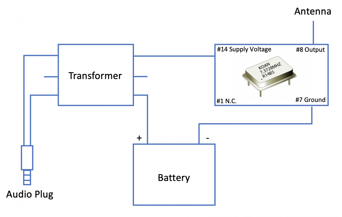 晶振廣泛應(yīng)用在各種無線傳輸?shù)膱龊现?。今天,凱擎小妹將介紹簡單的無線電波發(fā)射器的制作方法。如圖所示:我們需要晶振,變壓器,天線,電源,音頻。