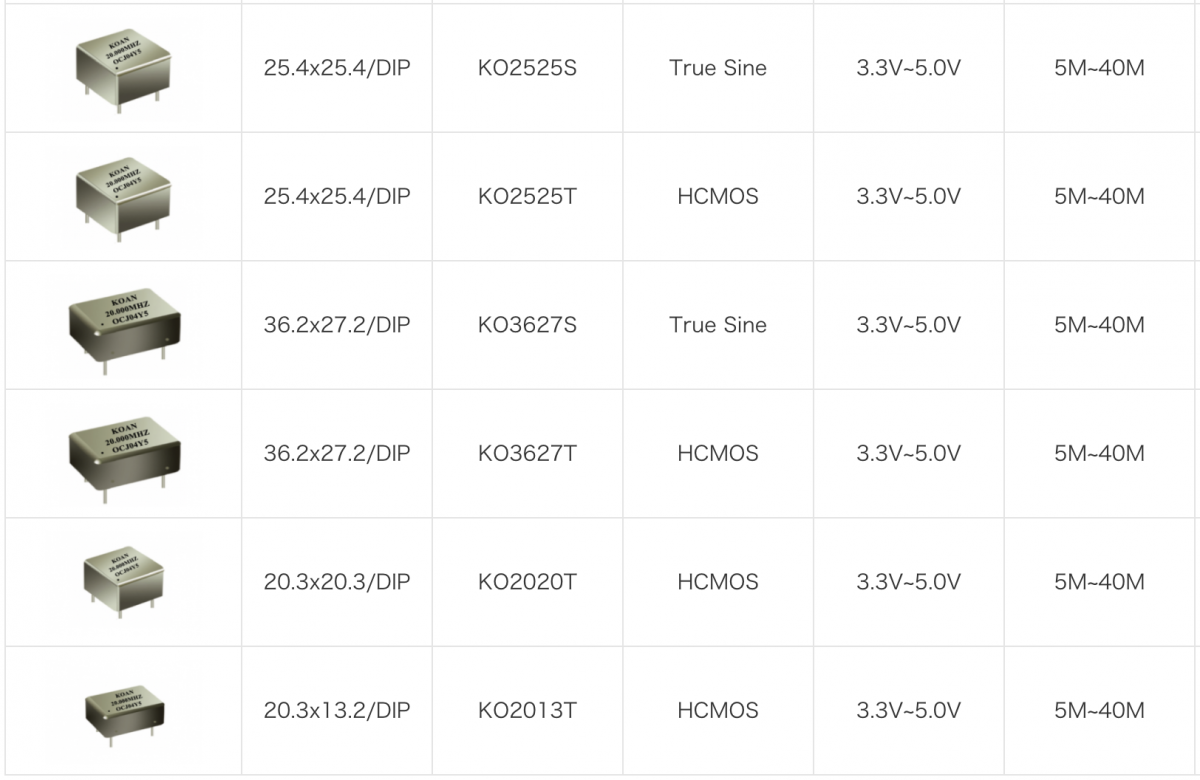 KOAN目前提供以下尺寸的恒溫晶振: