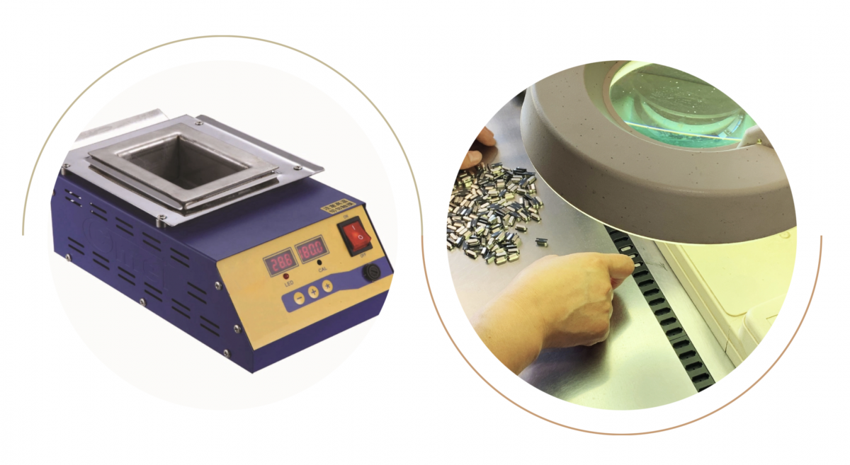 機(jī)器焊接:回流焊主要用于貼片晶振的焊接(例如KS32, KS50, KS70...); 波峰焊用于插件元件(DIP封裝,例如KS08, KS14...)。