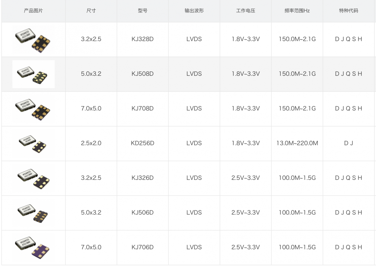 KOAN晶振有低相噪抖動(dòng)晶振,即KJ系列。以下為KOAN晶振LVDS輸出,低噪聲高精度晶振的列表,官網(wǎng)有更多產(chǎn)品內(nèi)容: