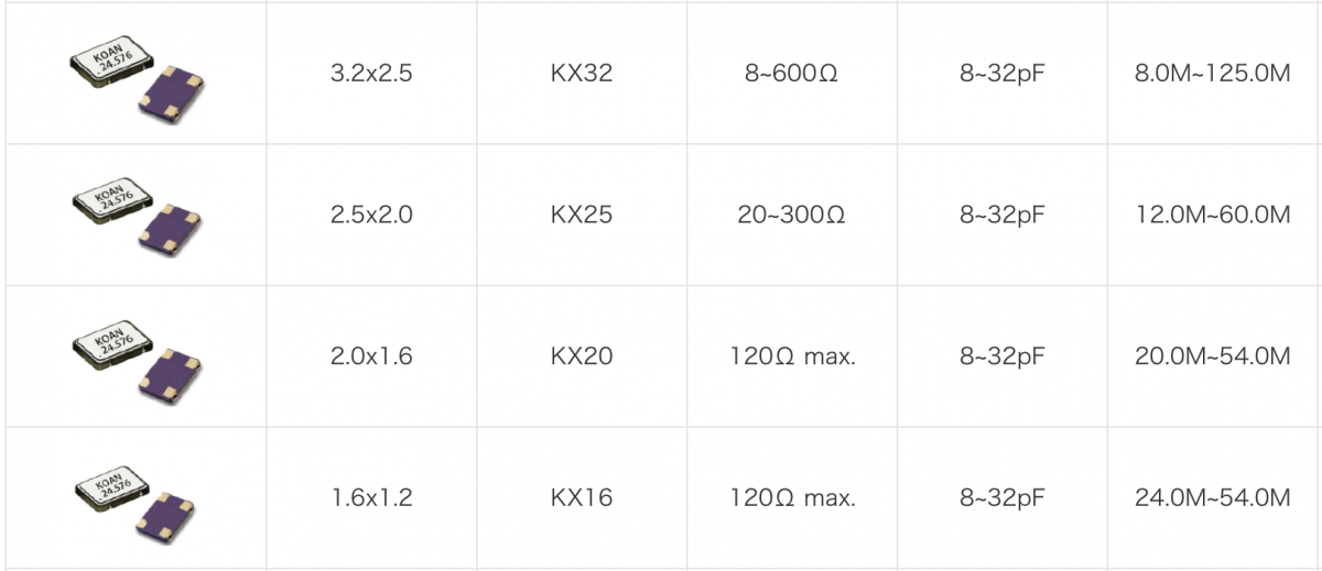 KOAN推薦RFID應用的晶振如下: