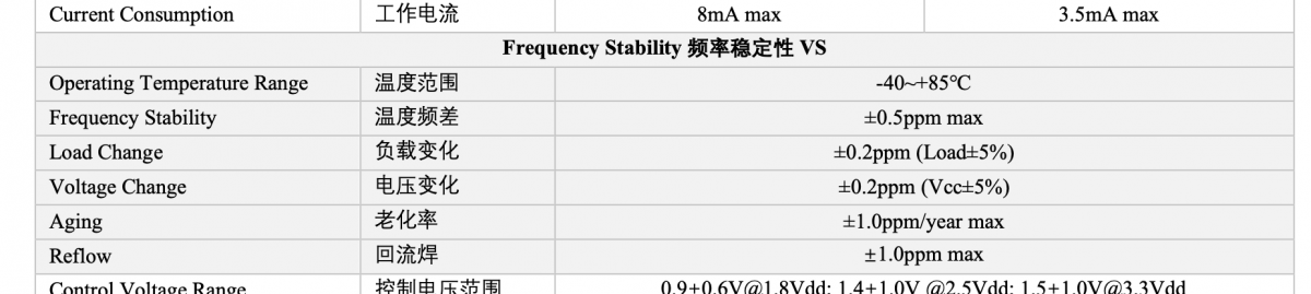 | 出廠時(shí)的實(shí)際頻率與標(biāo)稱值的偏差 | 頻率隨環(huán)境因素(溫度、電壓、時(shí)間等)變化的程度 |