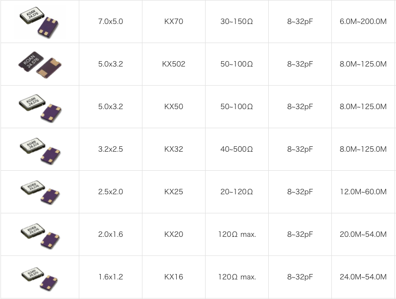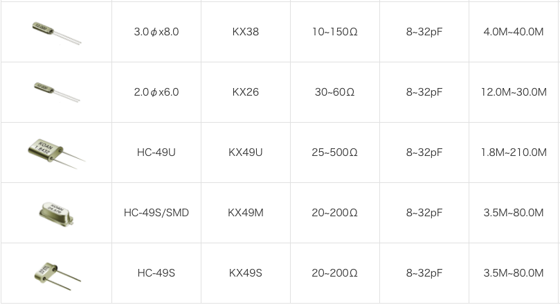 2. SMD可以選擇不同尺寸(1.6x1.2mm ~ 7.0x5.0mm)。其中5.0x3.2mm可以選擇2或者4個(gè)焊點(diǎn)。也可以選擇HC-49S/SMD假貼的封裝: