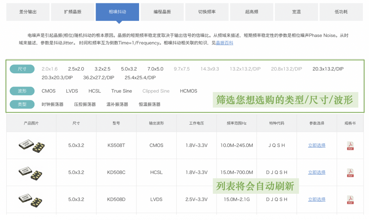 第一步: 選中‘相噪抖動’特種晶振類別。