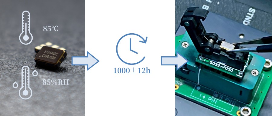 晶振在熱帶和亞熱帶高溫高濕條件下的耐潮濕能力,以及晶振的絕緣性能在經(jīng)受高溫、潮濕等環(huán)境應(yīng)力時,其絕緣電阻是否符合有關(guān)標(biāo)準(zhǔn)規(guī)定。試驗方式是將晶振放置在溫濕度85℃/85%RH,試驗時間1000±12小時,實驗結(jié)束后24±2小時內(nèi)進(jìn)行電性能測試。(參照GJB 360B 106/302)